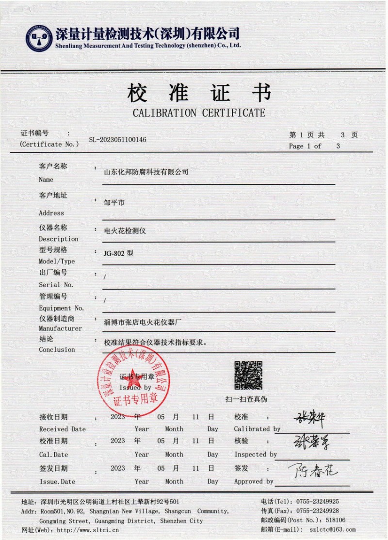檢測(cè)儀器報(bào)告證書(shū):電火花檢測(cè)儀jg-802