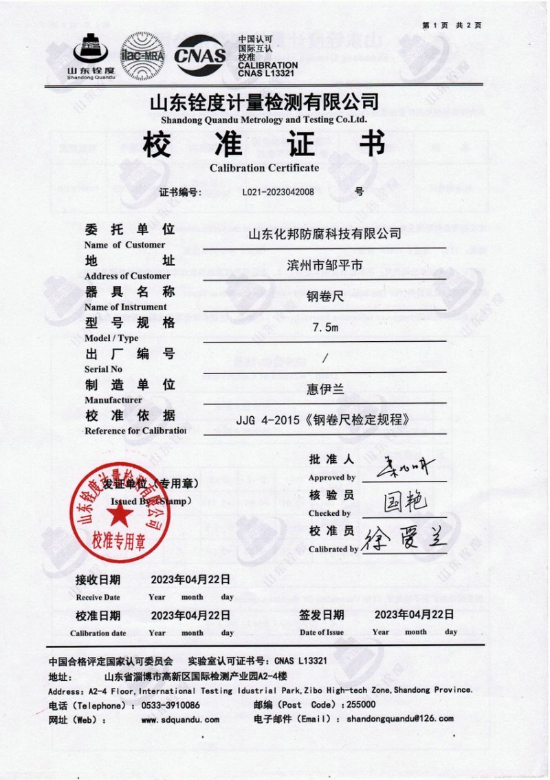 檢測(cè)儀器報(bào)告證書:鋼卷尺長(zhǎng)度堅(jiān)定報(bào)告